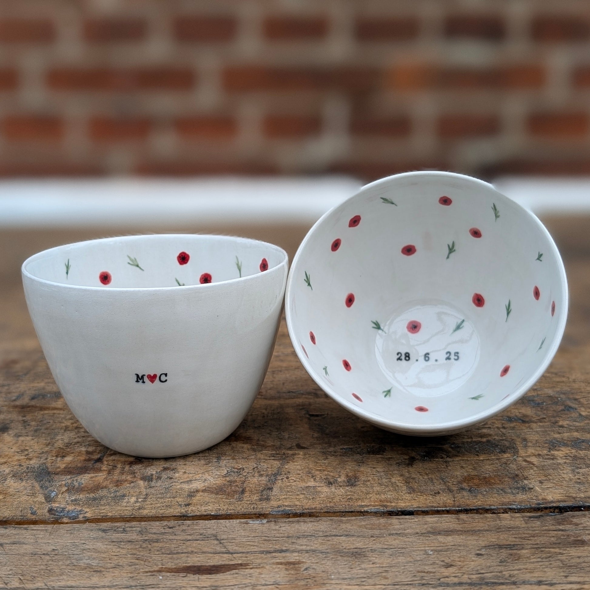 Den perfekte gave til brudeparret eller andre med en særlig mærkedag. Jeg skriver de ønskede initialer, dato og valgfrie dekorations motiver (som udgangspunkt flora men hør ved evt. andre ønsker). Den angivne pris er pr. stk.
