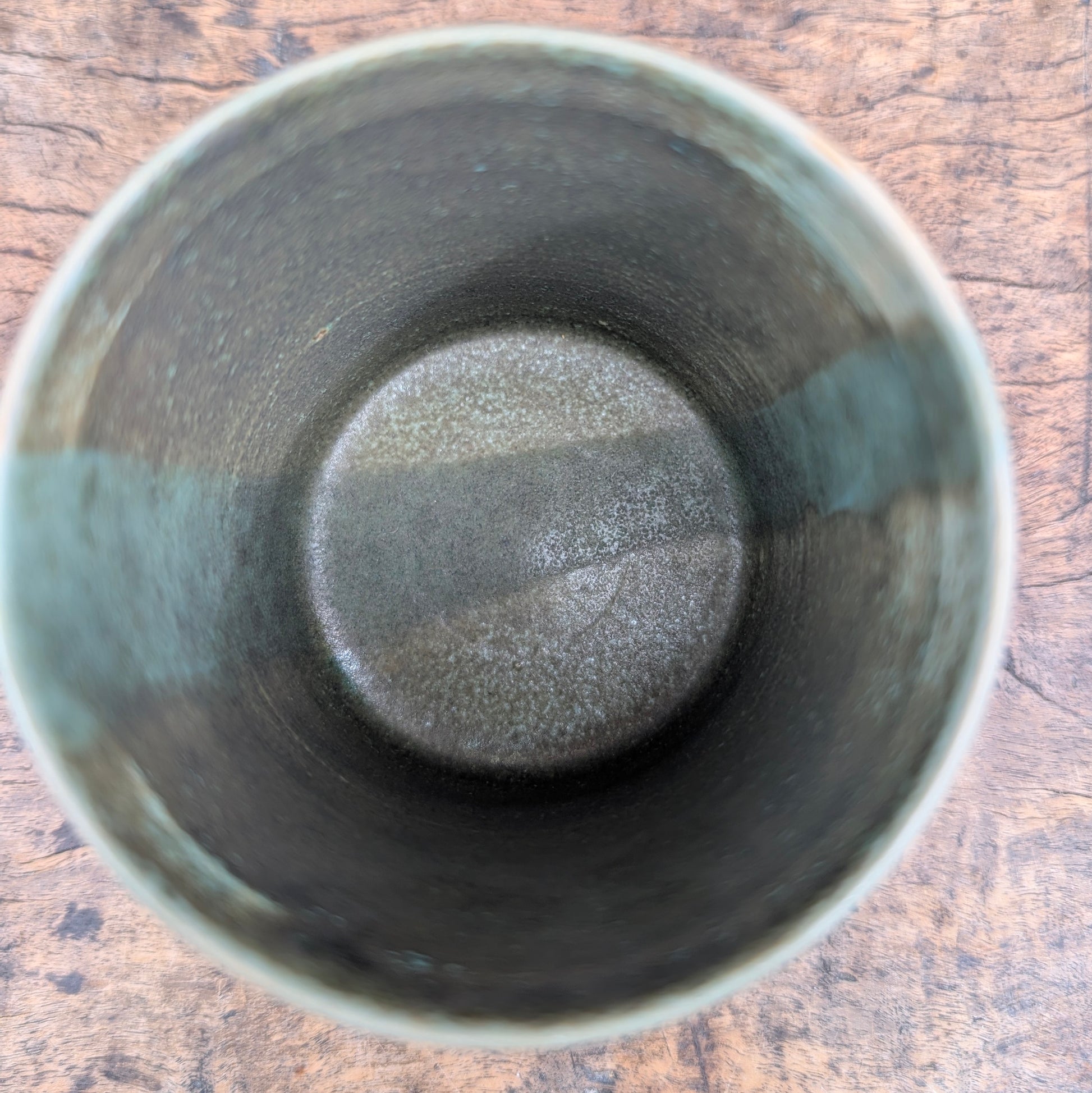 Finish: Grøn/turkis mat glasur med mørkt spil der varierer på overfladen fra yderside til inderside