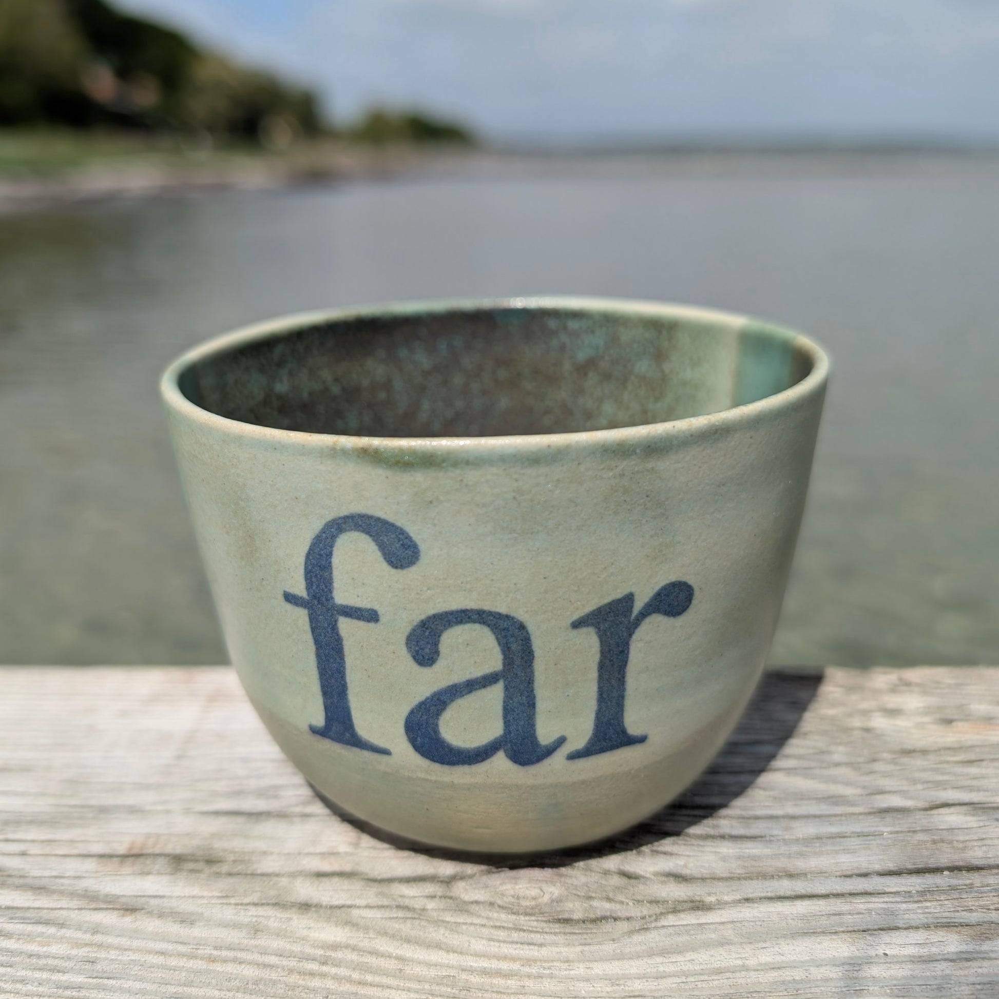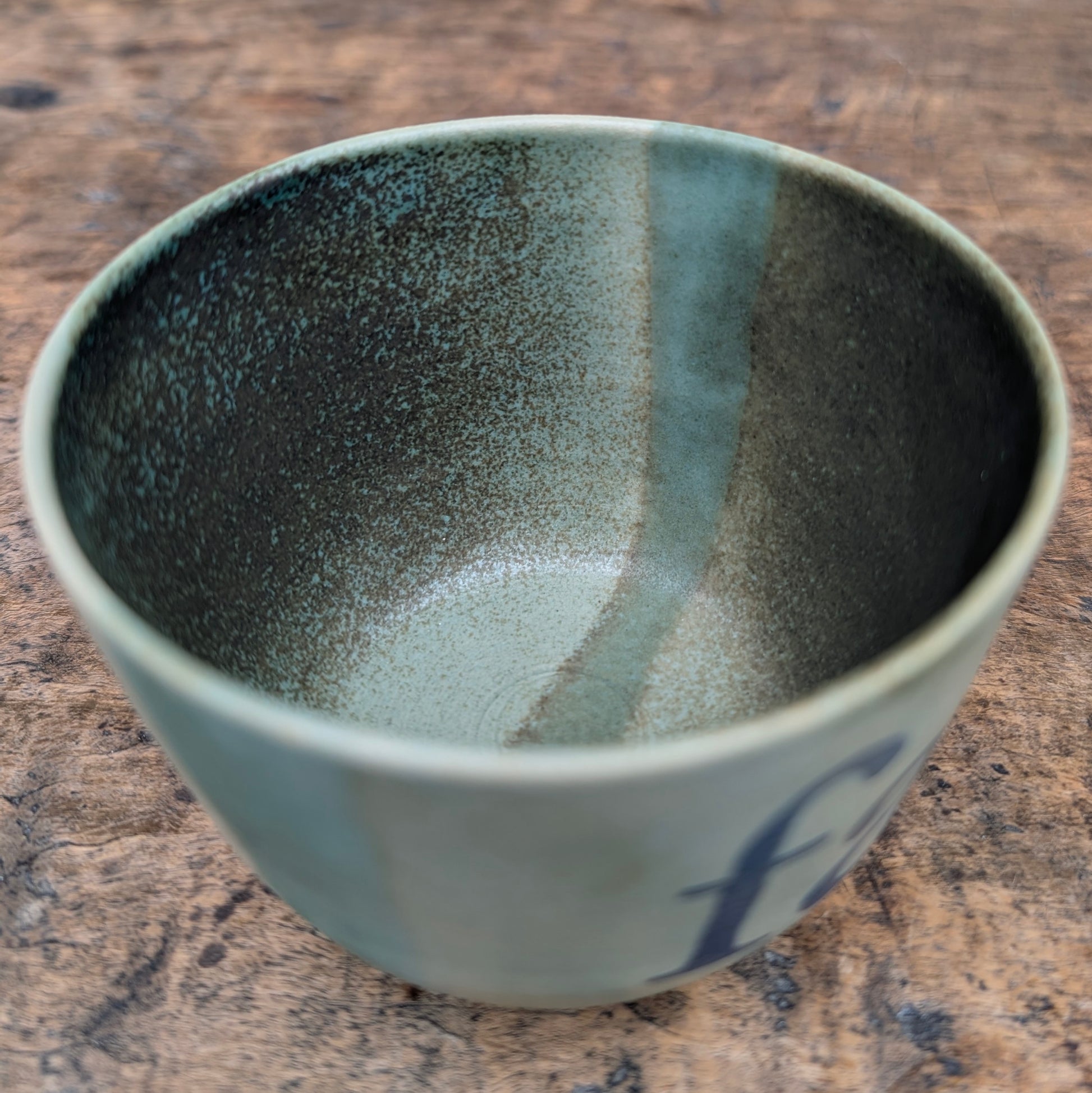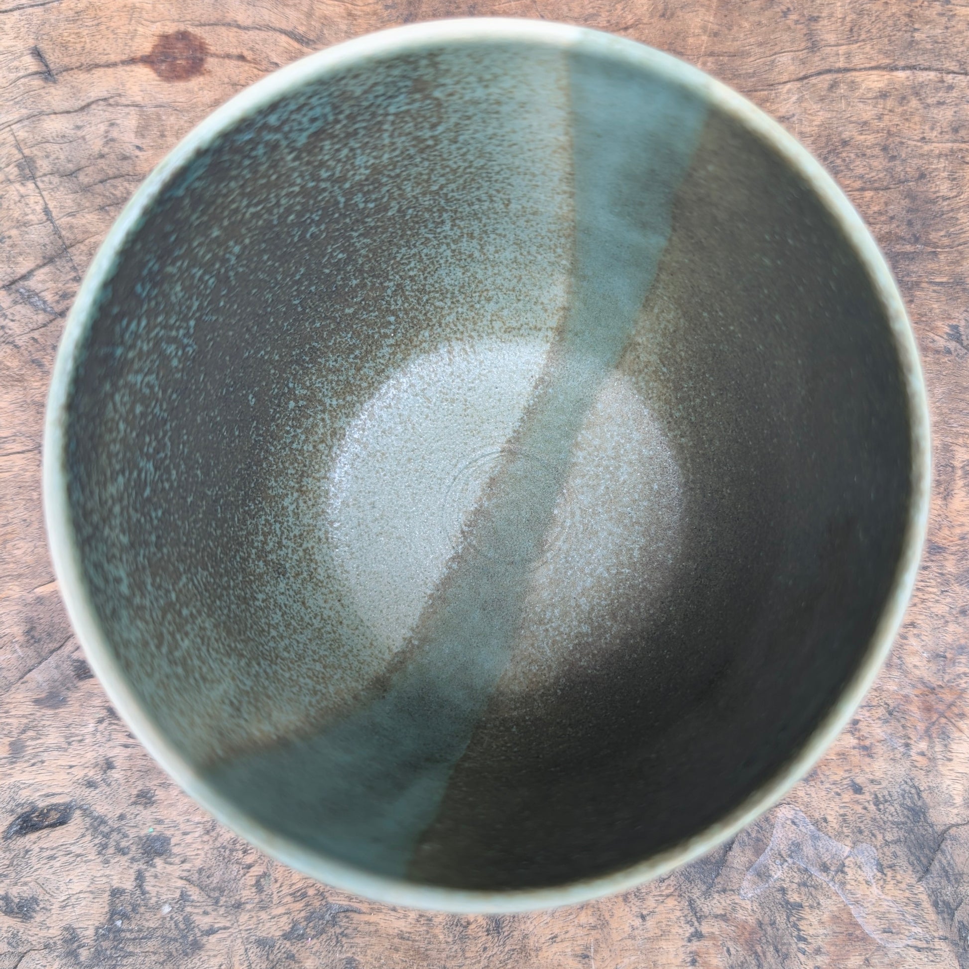 Finish: Grøn/turkis mat glasur med mørkt spil der varierer på overfladen fra yderside til inderside