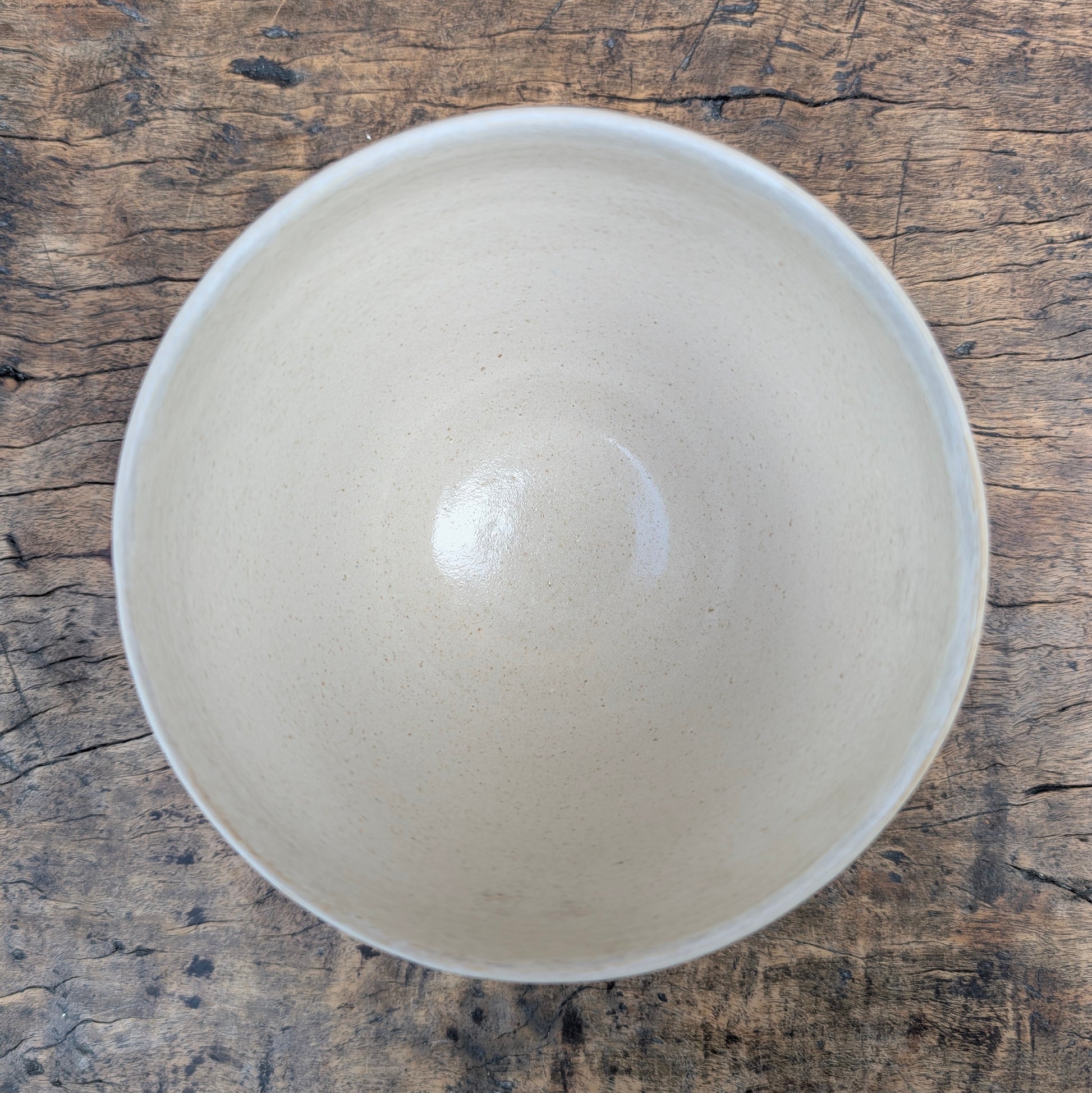 Finish: Mørk blø ler med mat glasur på ydersiden. Lys beige på indersiden.