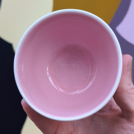 Start dagen og fortsæt den med den bedste indstilling "Good vibes only". Ingen plads til sure miner, bare lækker kaffe og keramik. Koppen er lavet i porcelæn, dekoreret med akvarel og indersiden har en skøn varm lyserød glasur, der understreger den gode stemning,