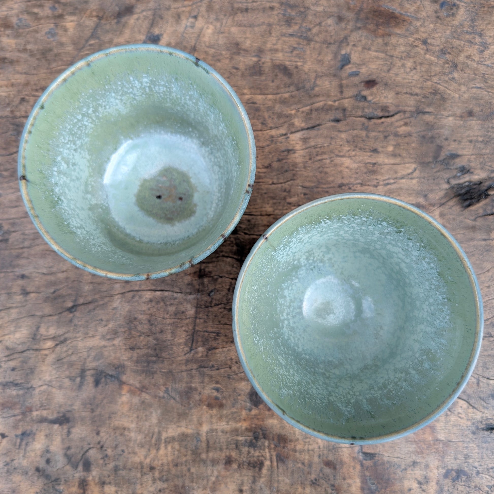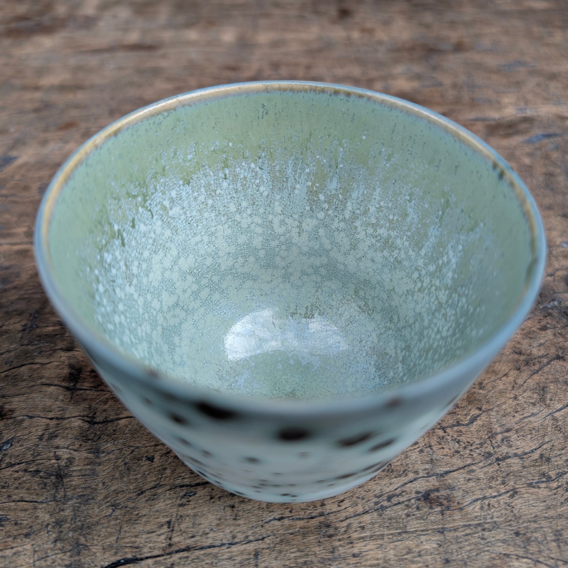Finish: Ydersiden silkemat glasur, indvendigt blank grønlig glasur med krystaller
