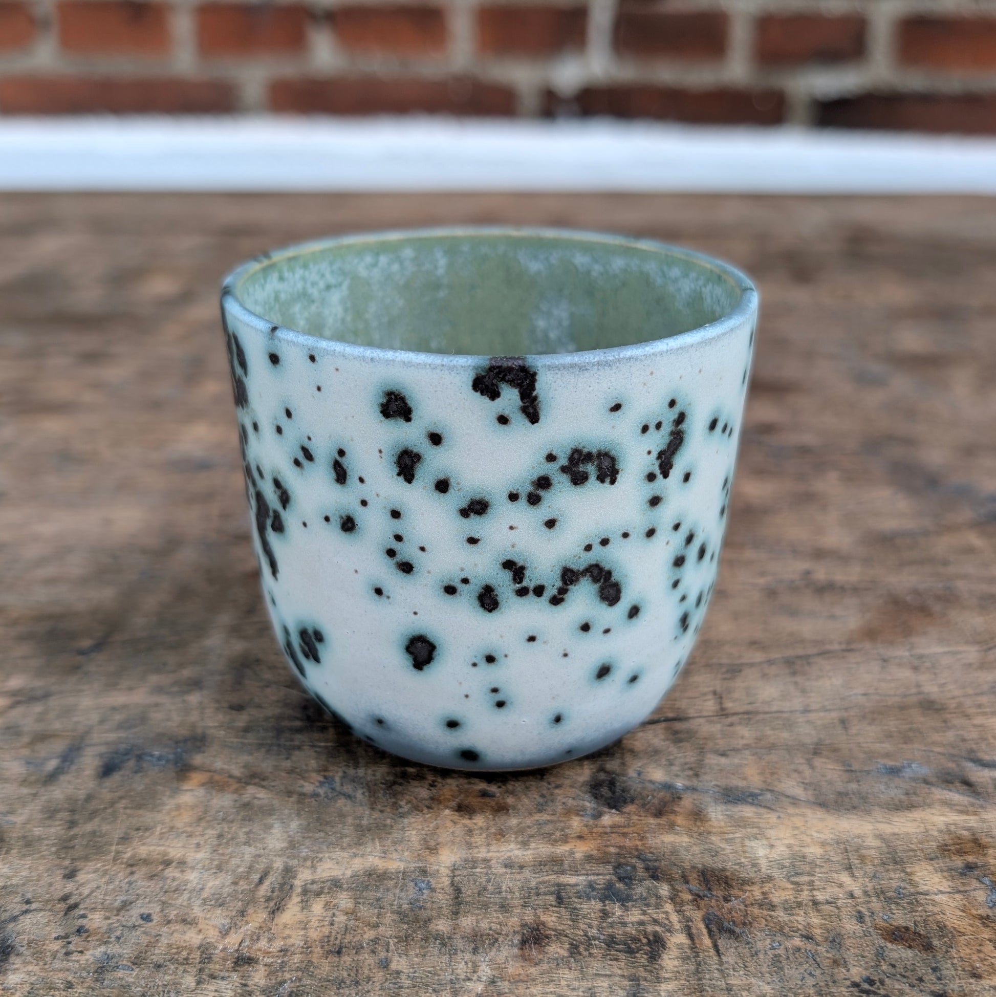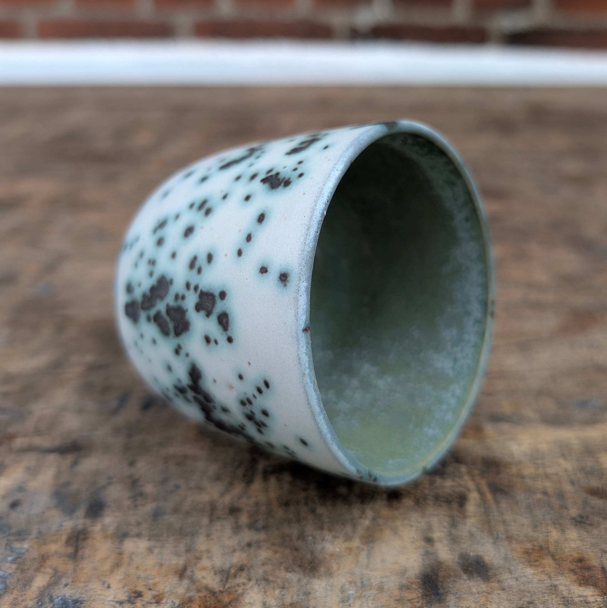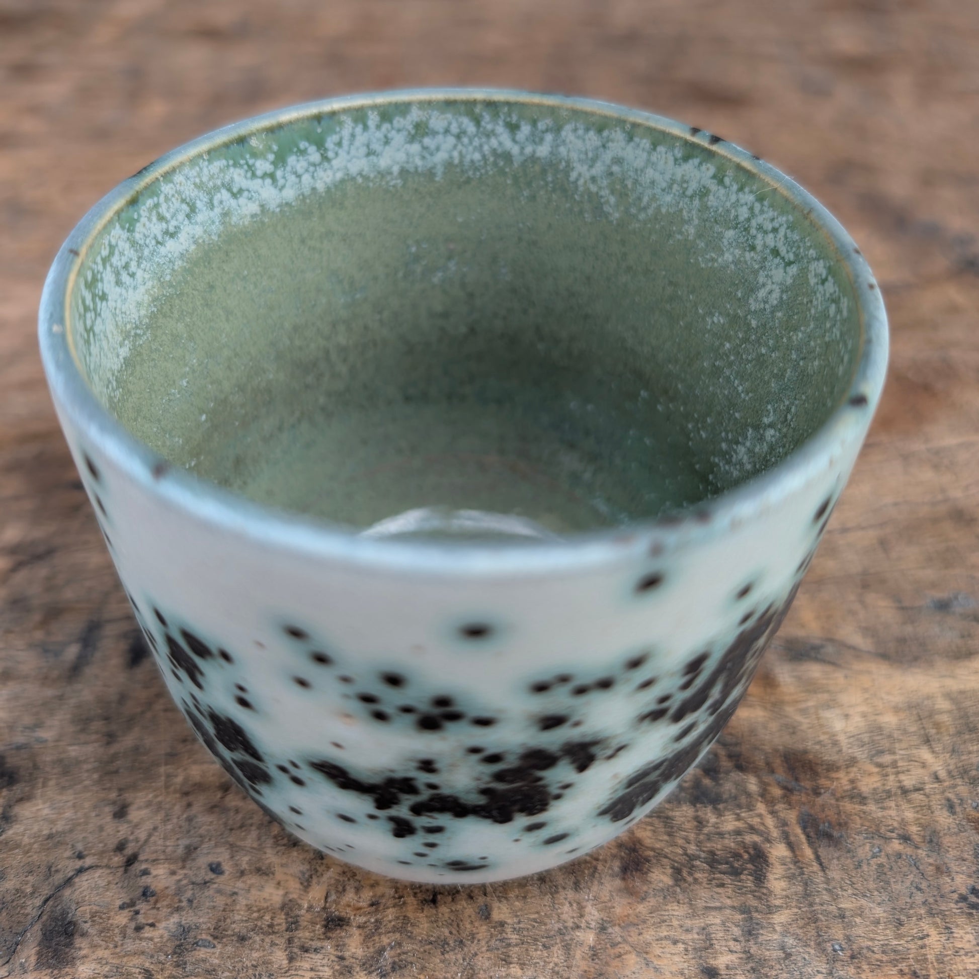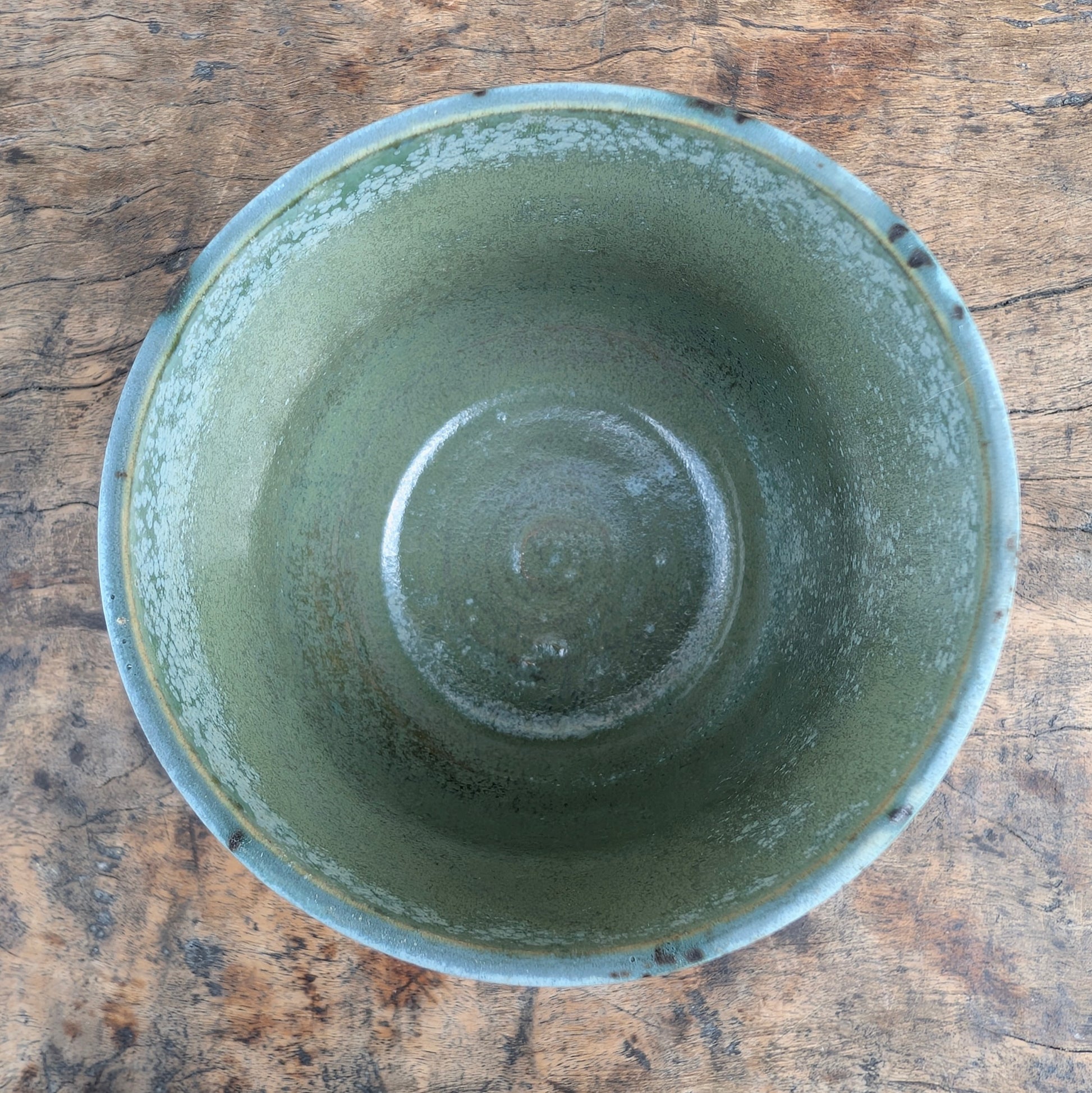 Finish: Ydersiden silkemat glasur, indvendigt blank grønlig glasur med krystaller