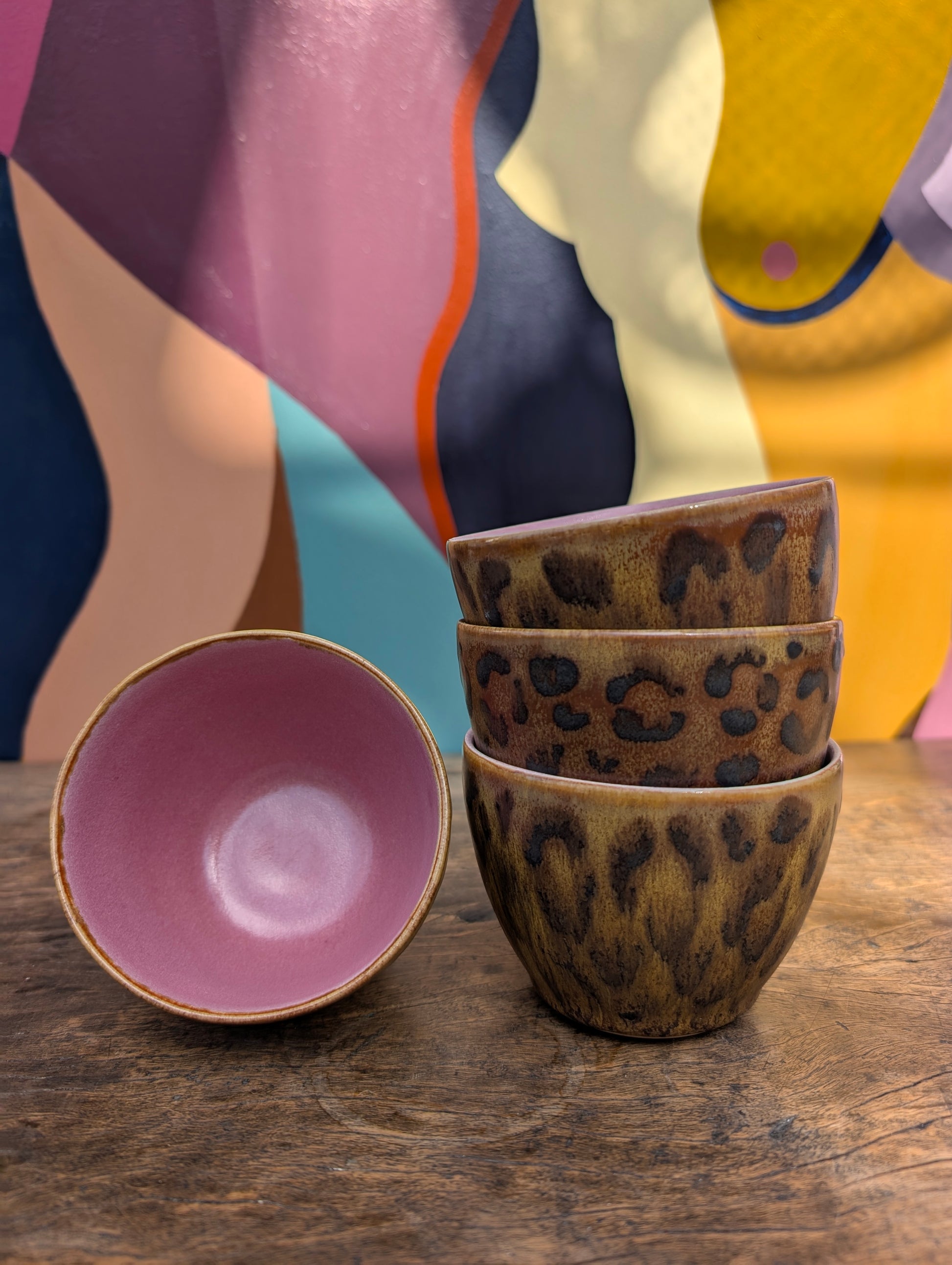 Smuk dekoreret leopard kop med blank lyserød indre glasur. Hver enkel af leopardens pletter er håndmalet på for at opnå effekten. Du modtager et krus i denne smukke glasur – hvert enkelt er unikt, så det præcise udtryk kan variere fra dem på billederne.