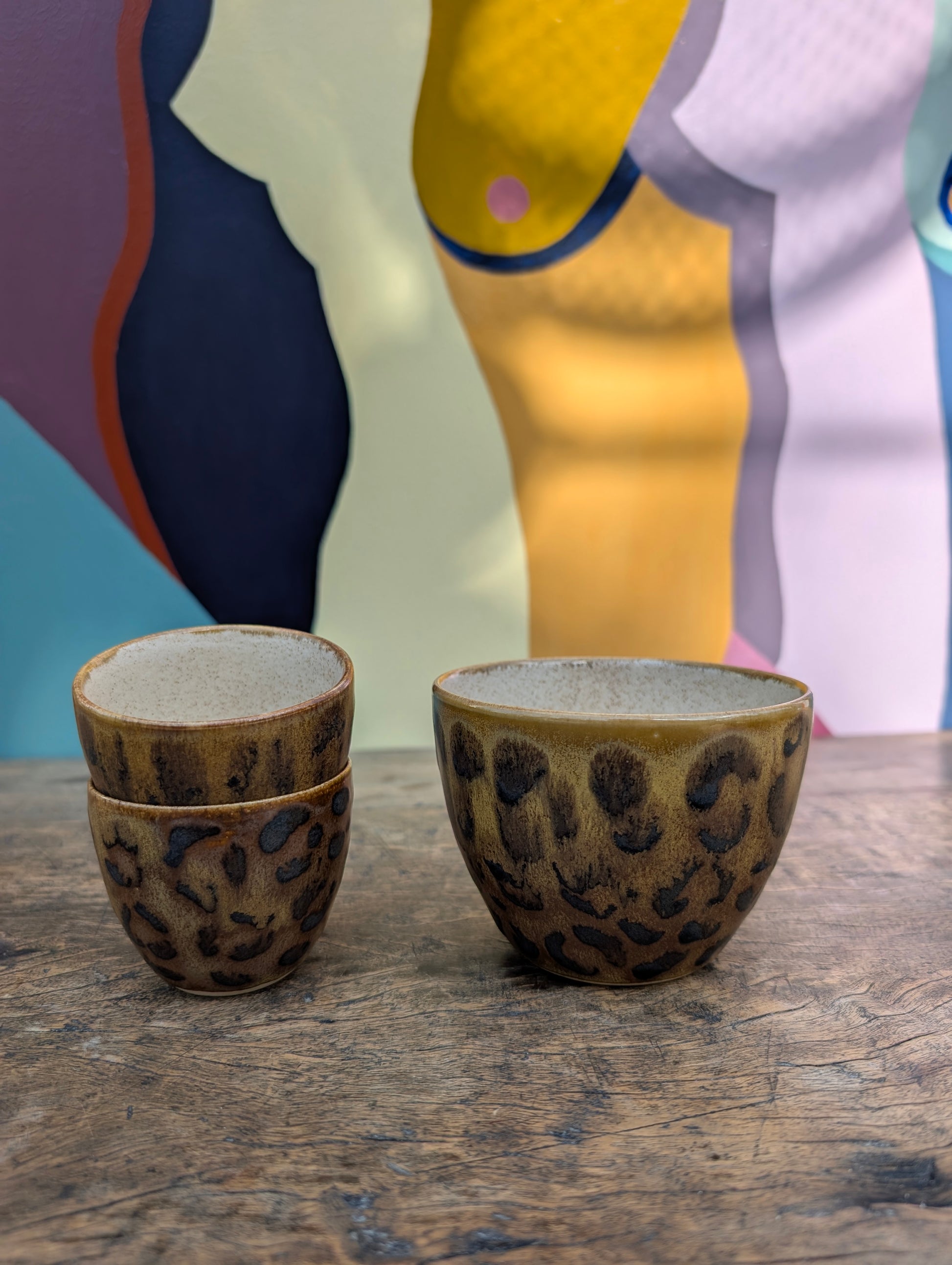 Smuk dekoreret leopard kop med blank sandfarvet indre glasur. Hver enkel af leopardens pletter er håndmalet på for at opnå effekten. Du modtager et krus i denne smukke glasur – hvert enkelt er unikt, så det præcise udtryk kan variere fra dem på billederne.