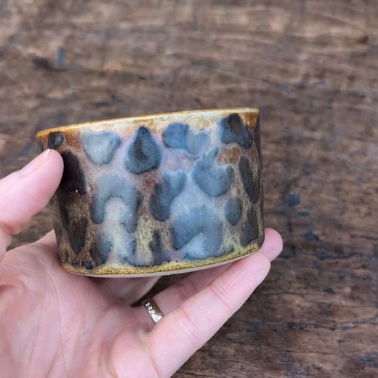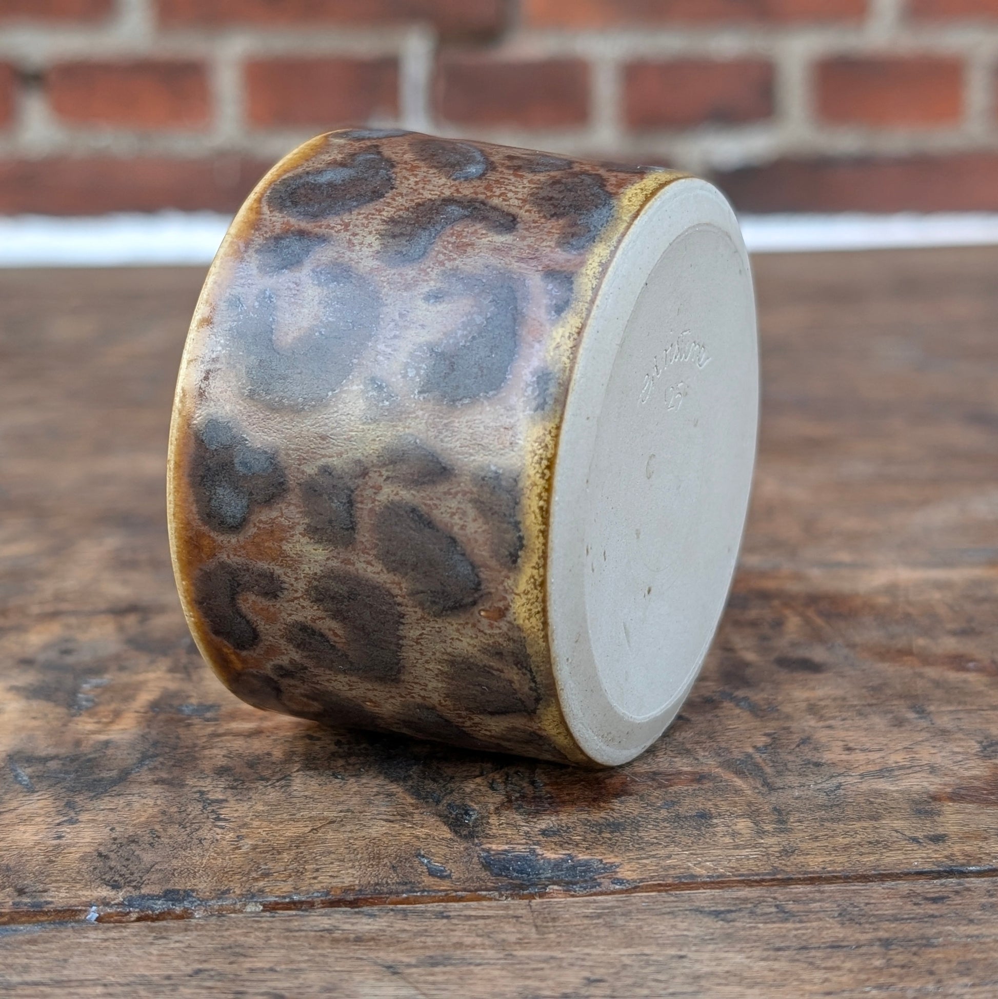 Finish: Silkemat leopard glasur på yderside, indeni mat sort/brun med gyldne pletter