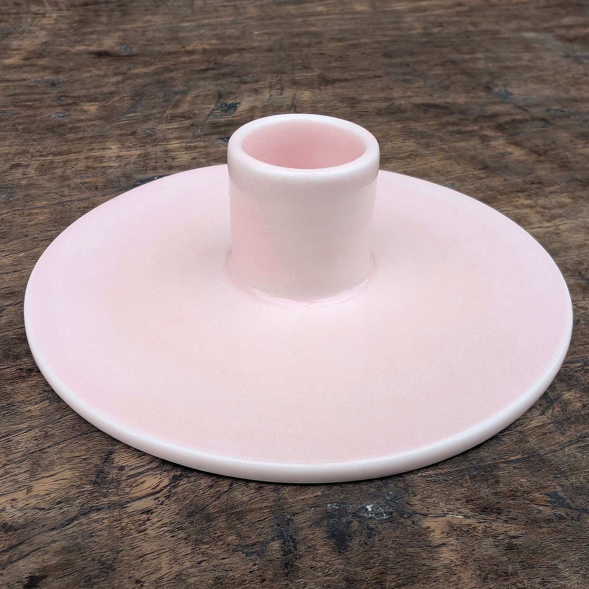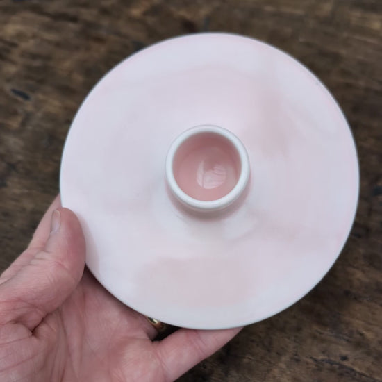 Smuk lyserød lysestage drejet i porcelæn, perfekt til påske og resten af året.