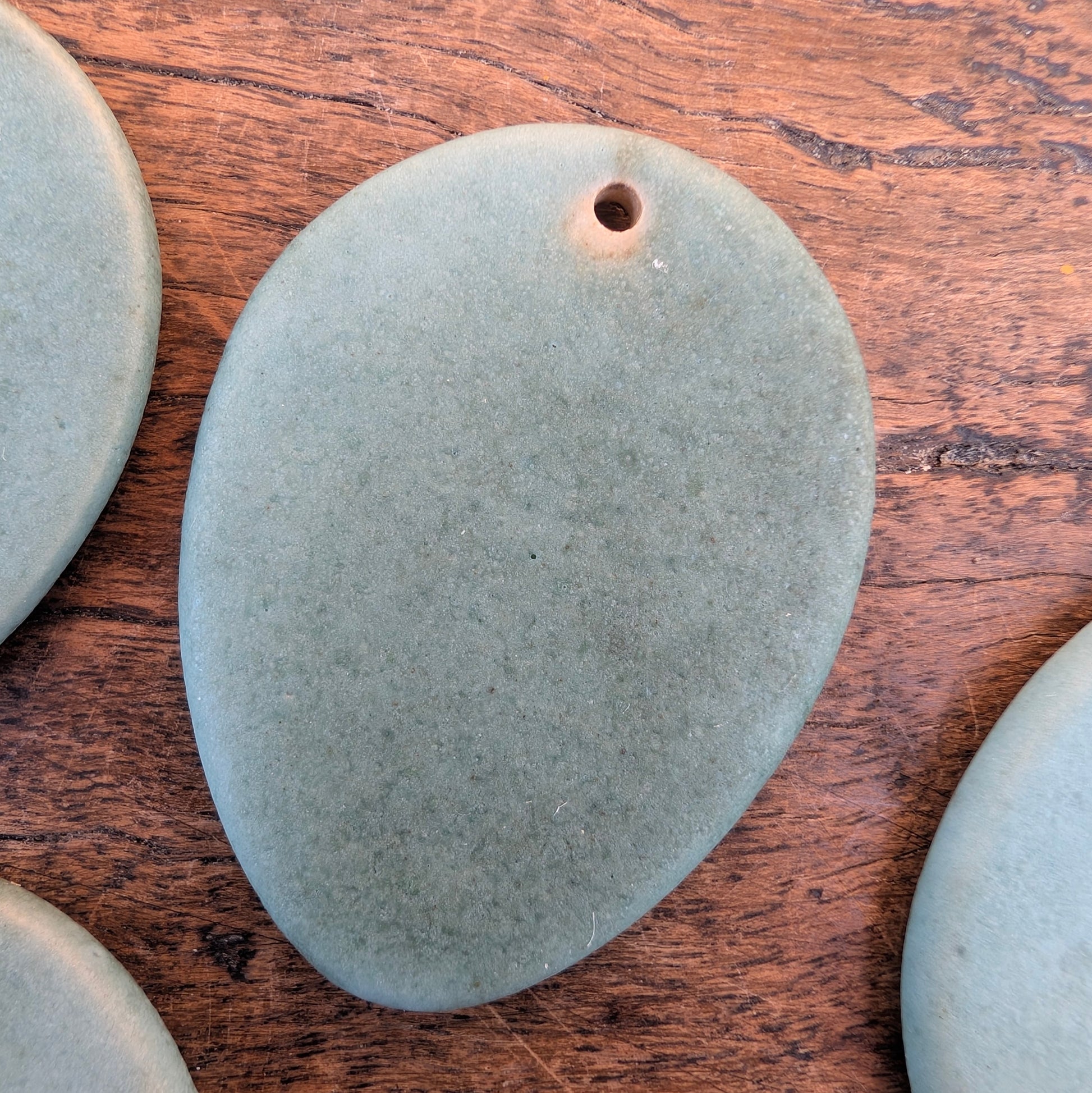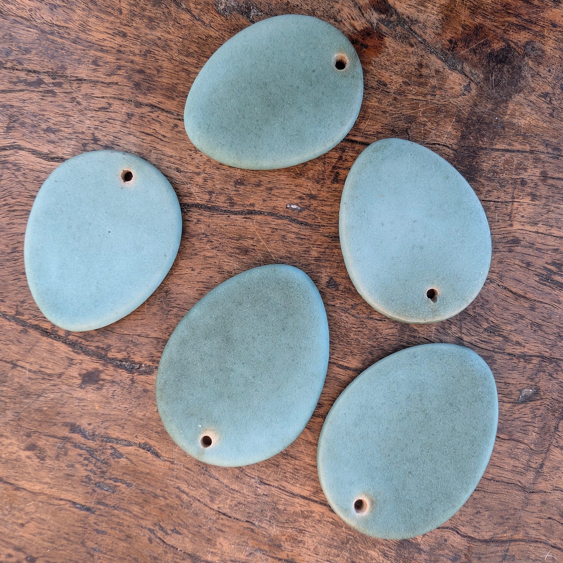 Finish: Mat blå/grønlig glasur med små huller til ophæng