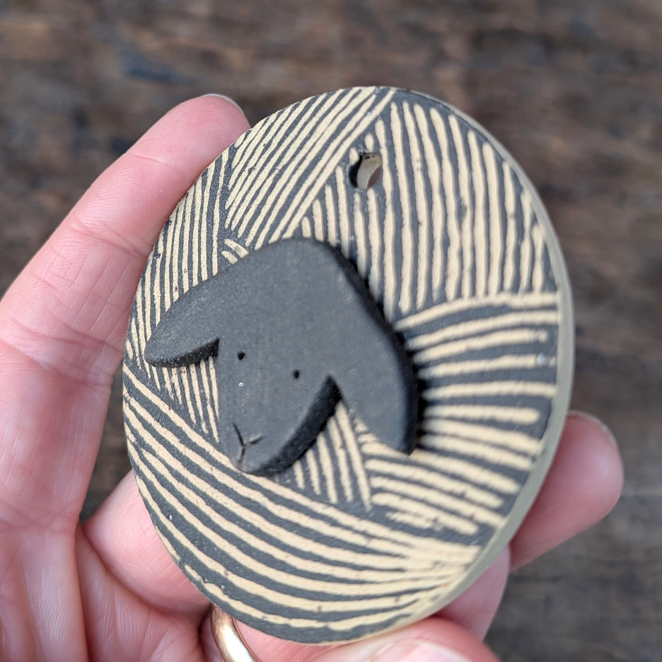 Til dig der elsker at strikke. Søde uldfår med højeste garn kvalitet. Kroppen er lavet med sgraffito teknik, så trådene i garnnøglerne får et levende spil. Kan hænge fremme hele året.