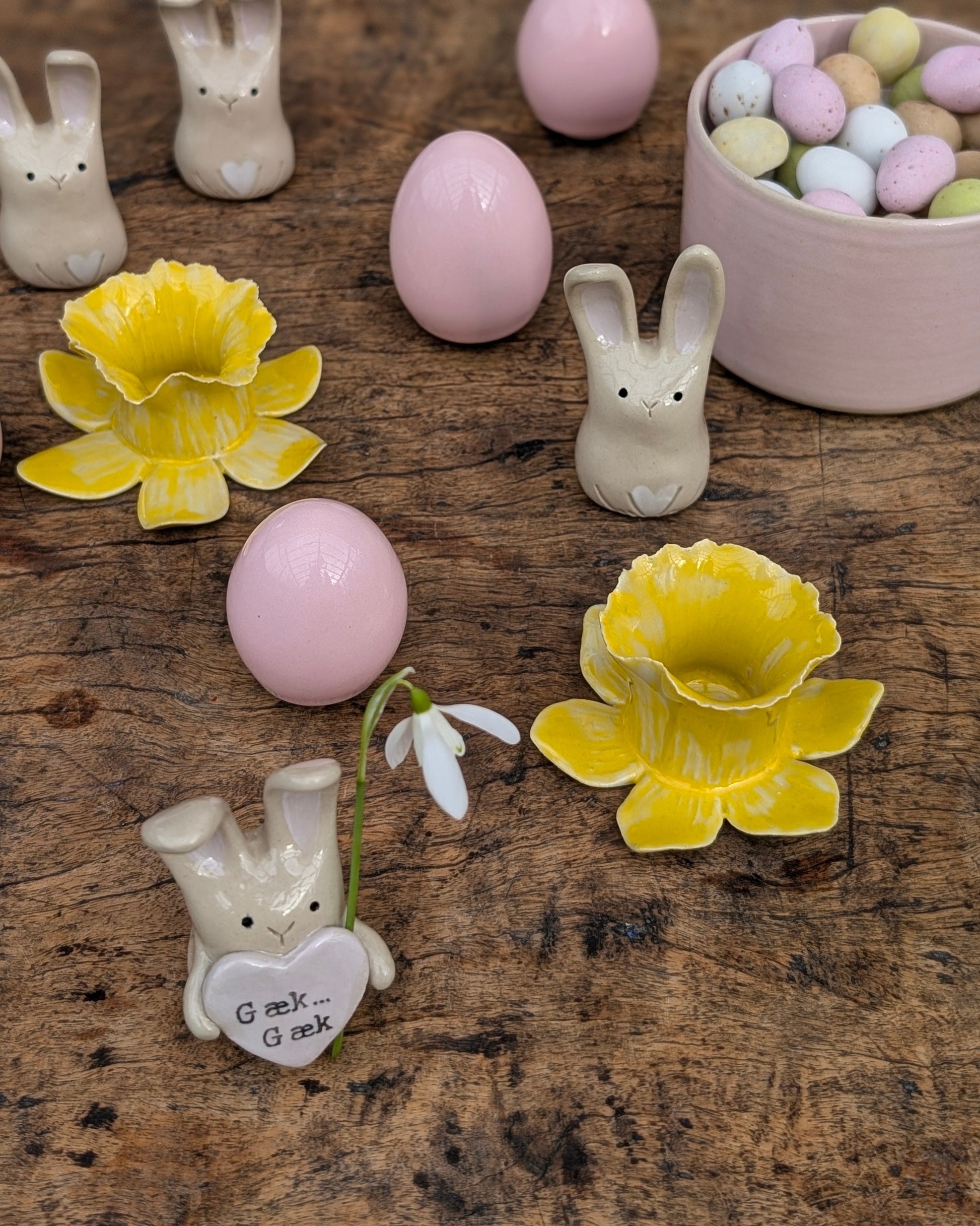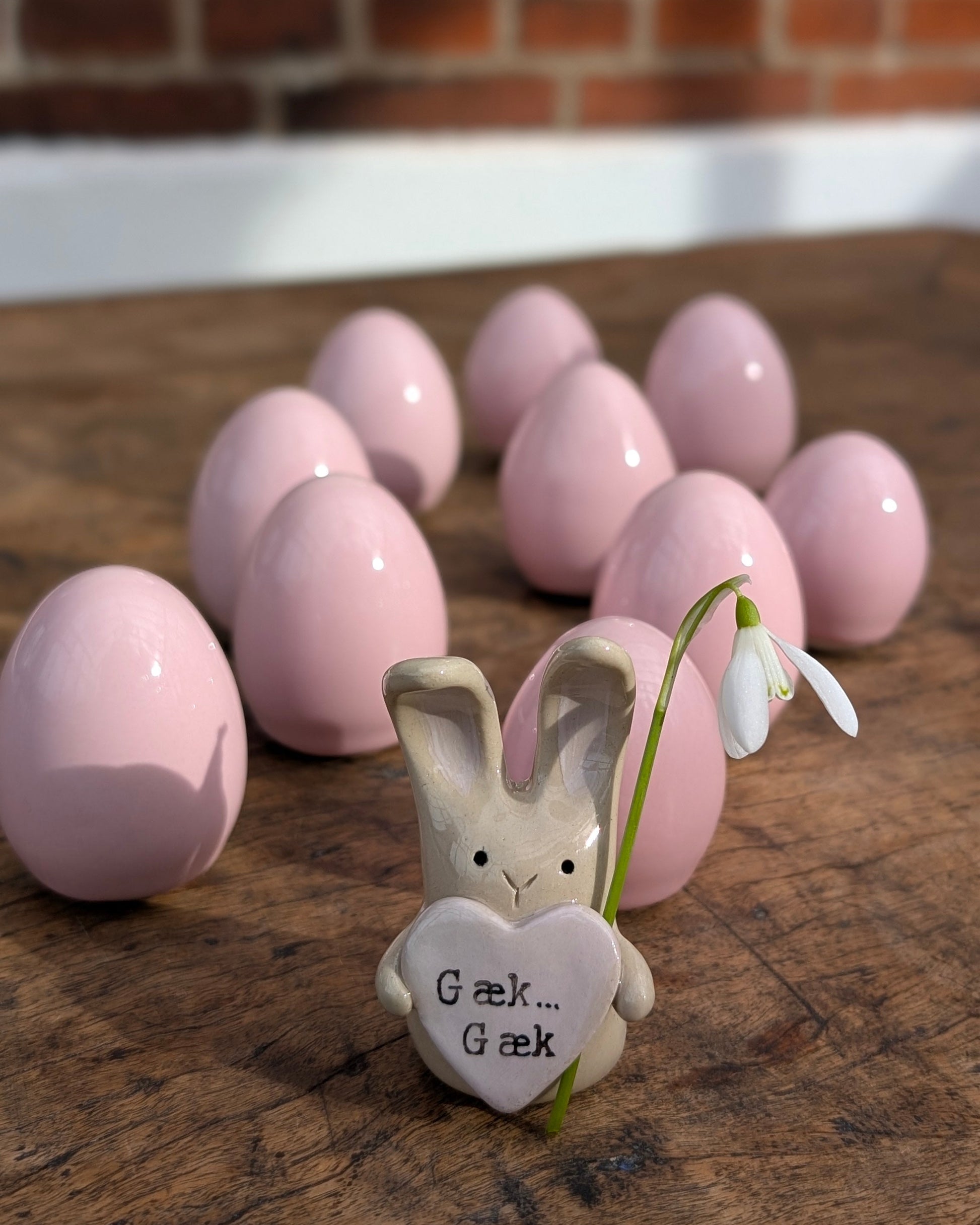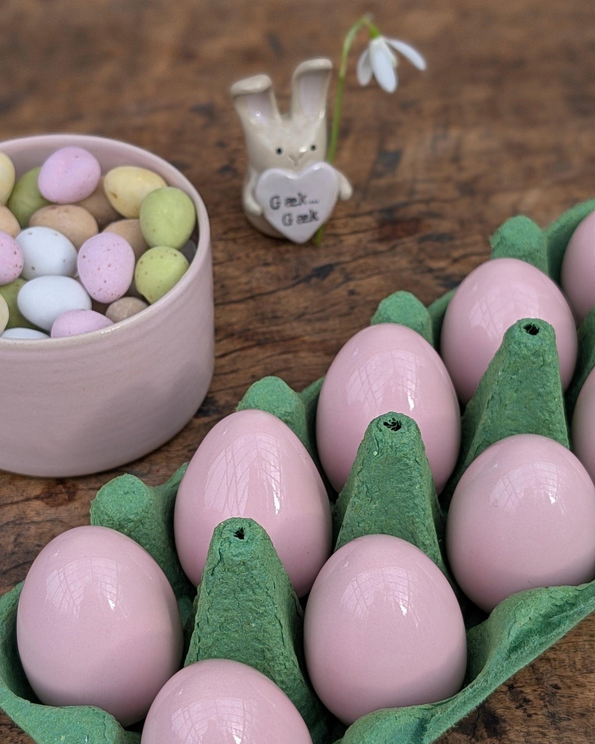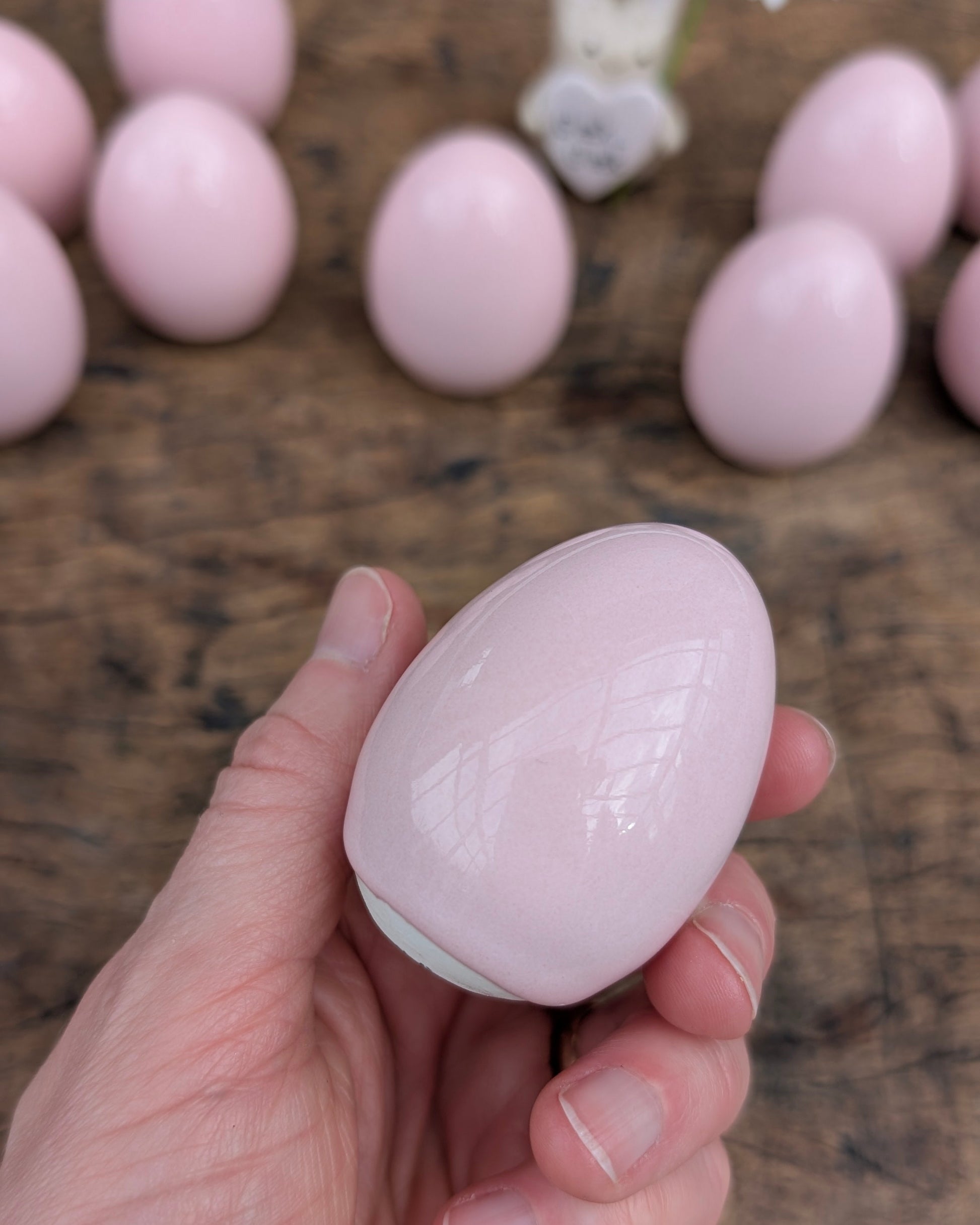 Skønne lyserøde påskeæg. Lavet i porcelæn og glaseret med den smukkeste lyserøde glasur der med sin smukke glans, næsten får æggene til at lyse op. Giver hurtigt forårs- og påskestemning på bordet eller i vindueskarmen. Perfekt som værtindegave eller forkælelse til dig selv.