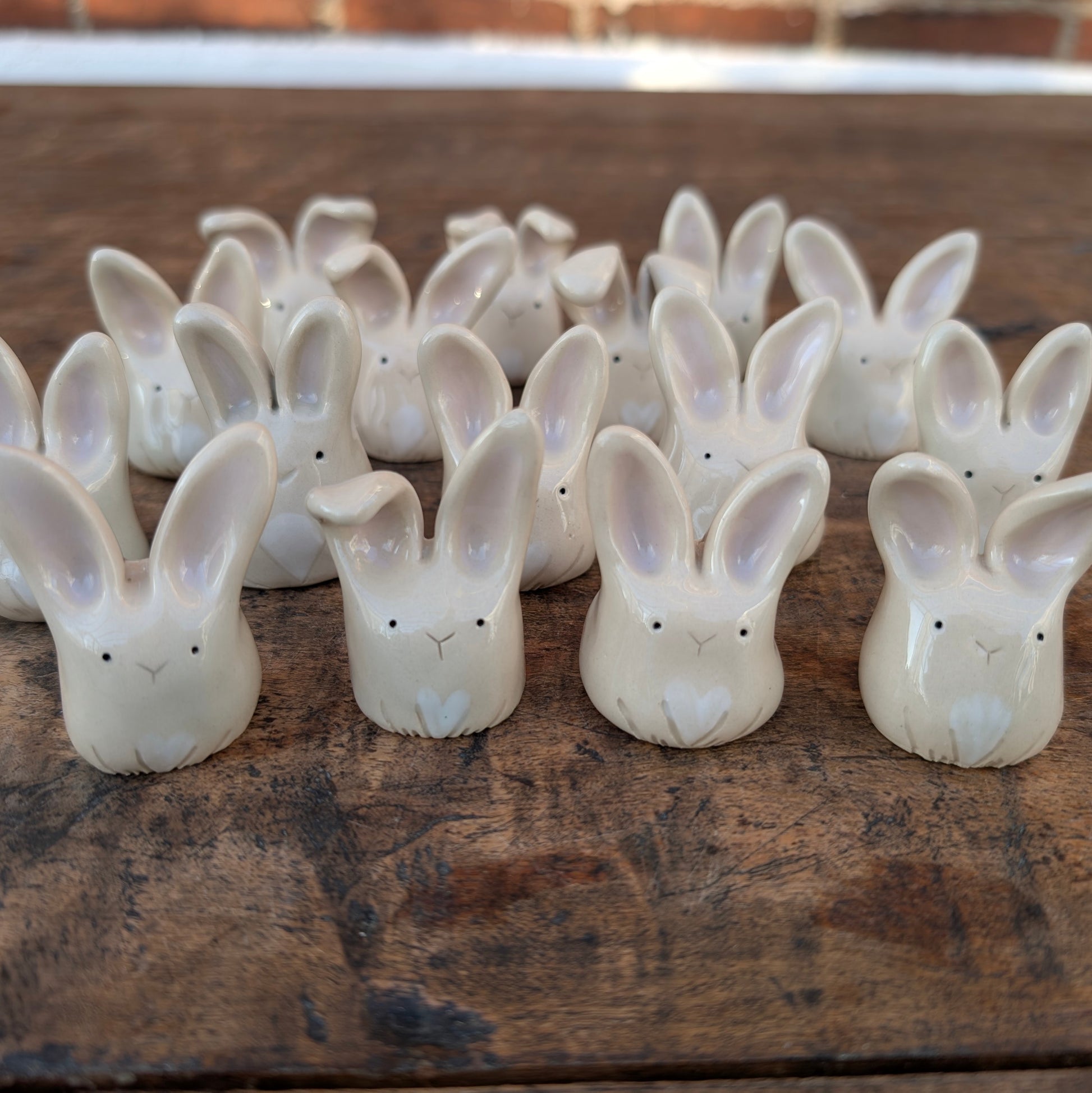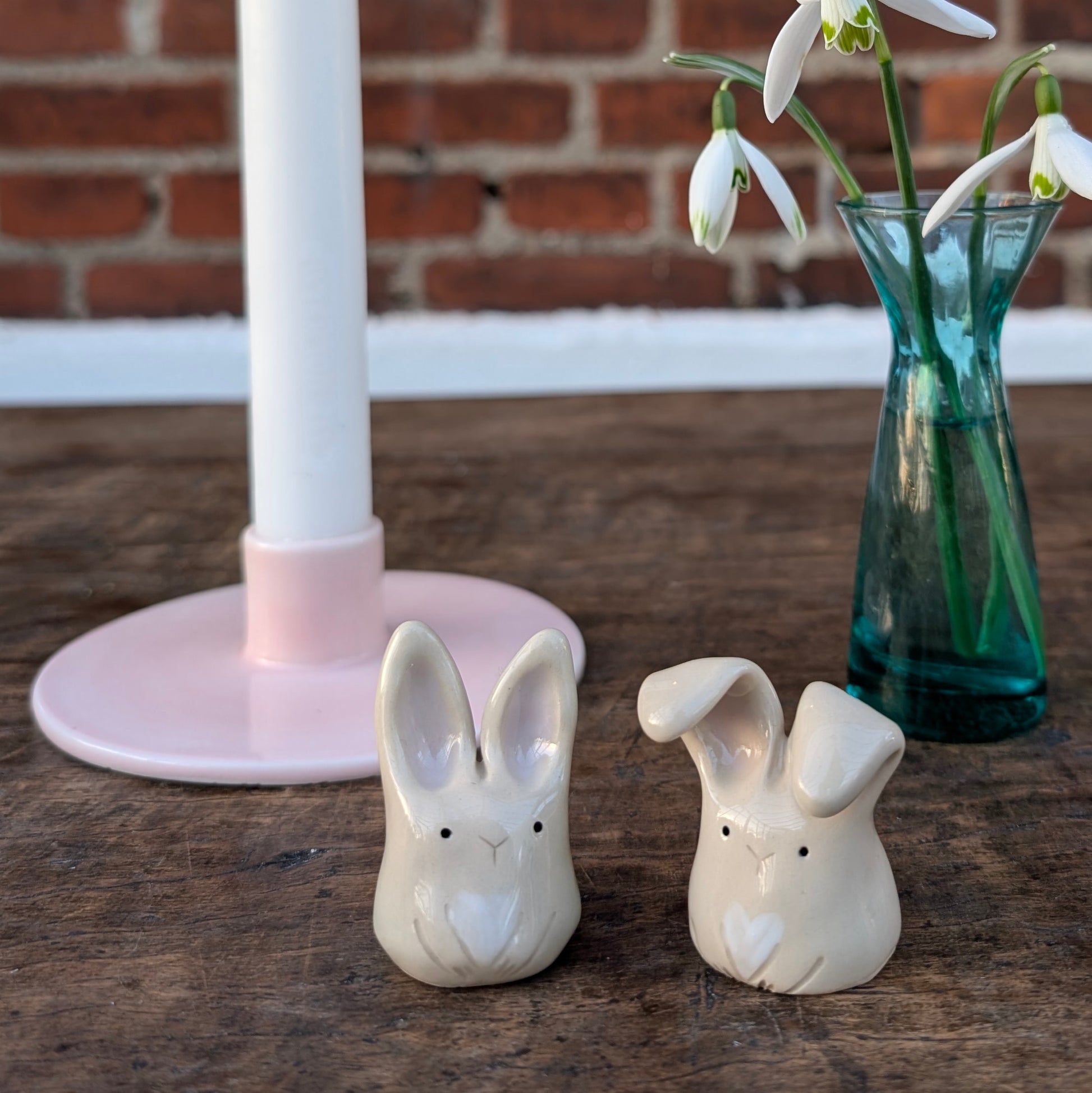 Søde påskeharer med forskellige udtryk. Med de fine påskeharer kommer der hurtigt påskestemning i hjemmet, uanset om du har dem på spisebordet, badeværelset eller værelset.