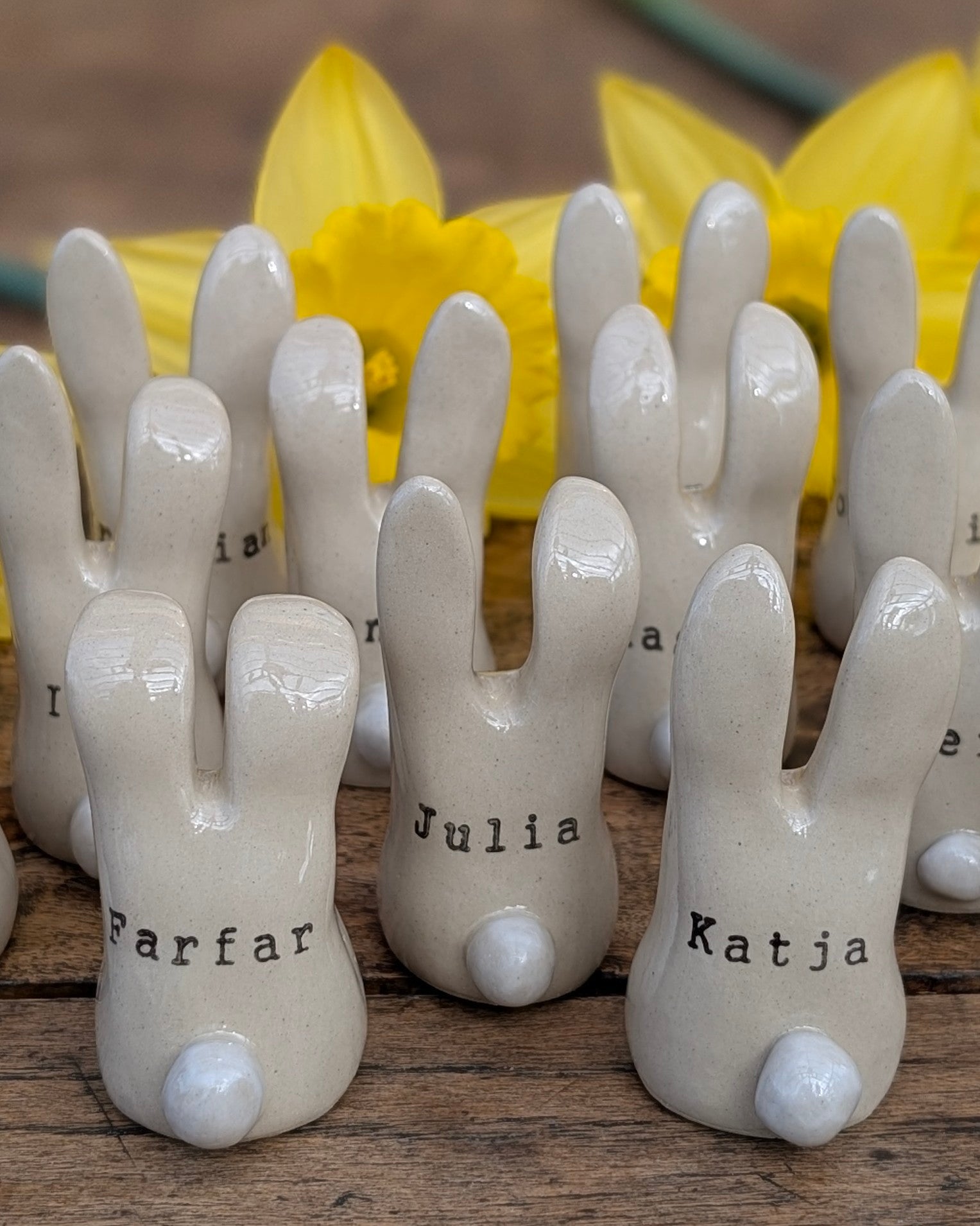 Få personlige søde påskeharer med dine navne eller ord og få påskestemning i hjemmet med dit helt eget præg.